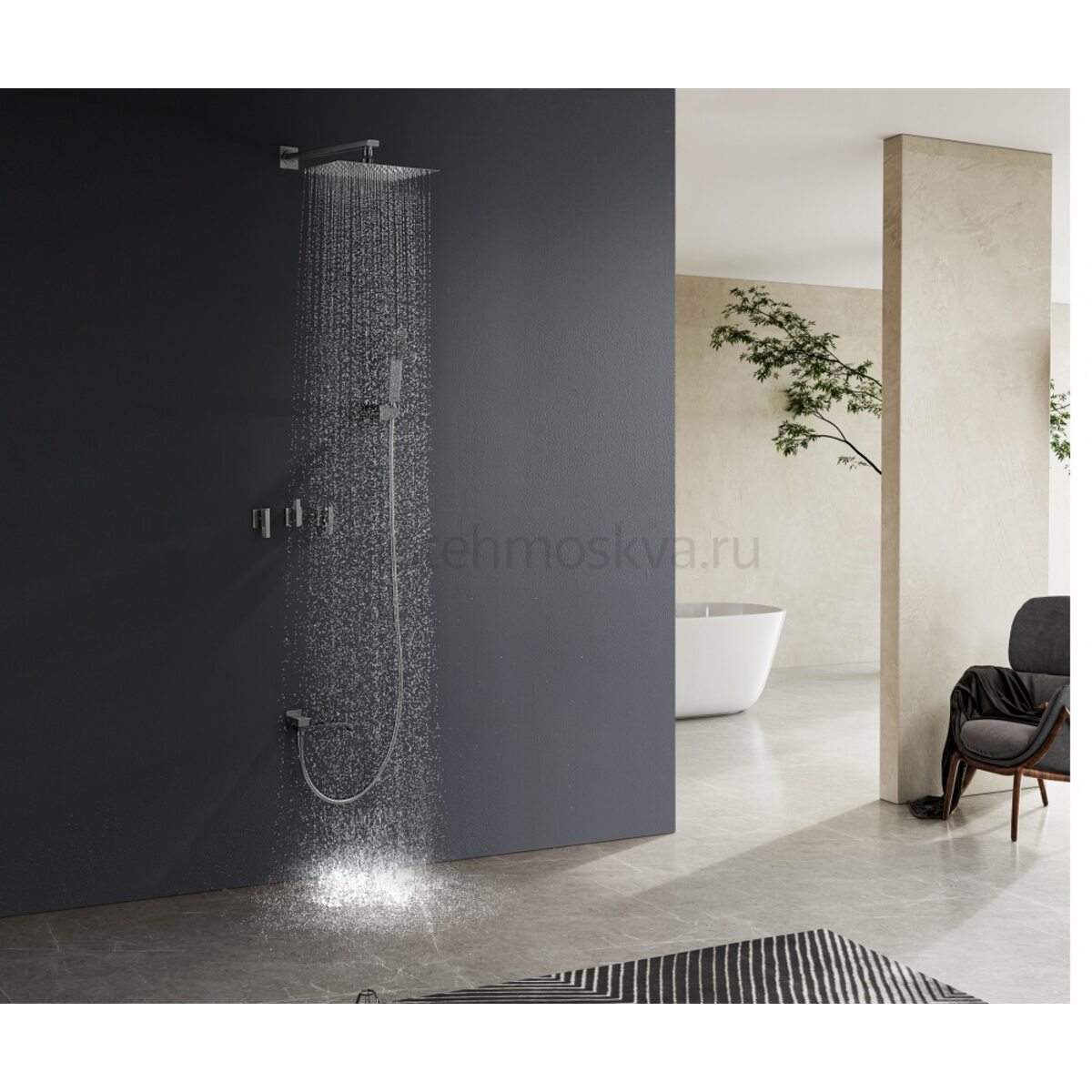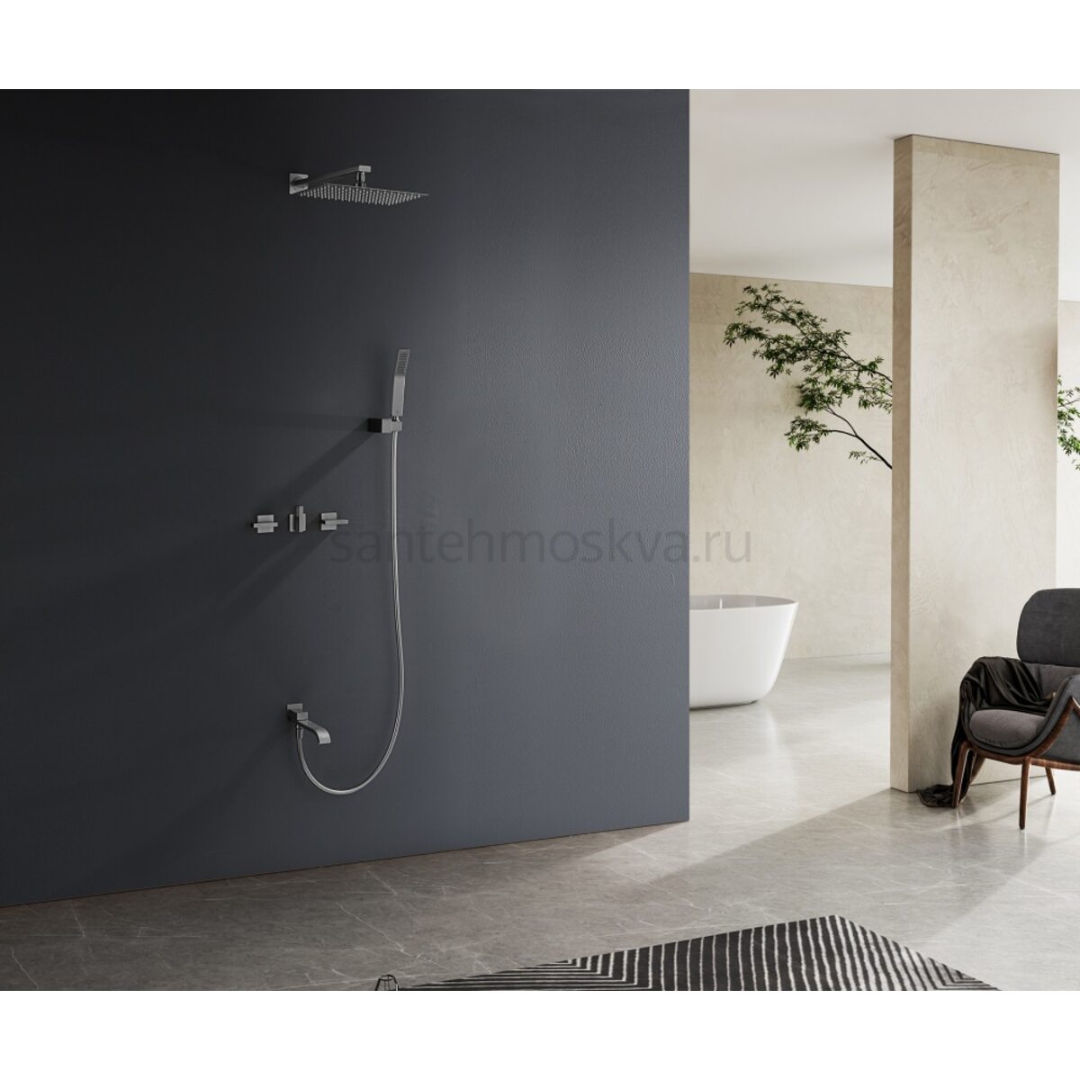 Характеристики - 01165-Q Смеситель встраиваемый для душа с 3-функ. (ГРАФИТ) (6/1шт)