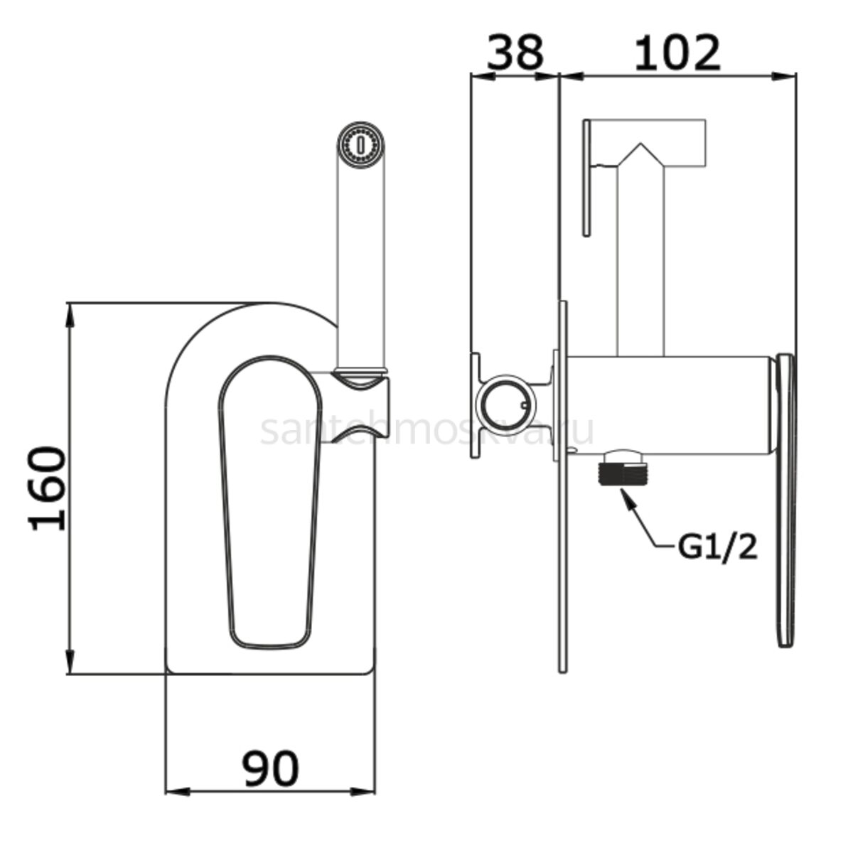 Характеристики - 02157-Q Смеситель встраиваемый с ГИГ. душем (ГРАФИТ) (10/1шт)