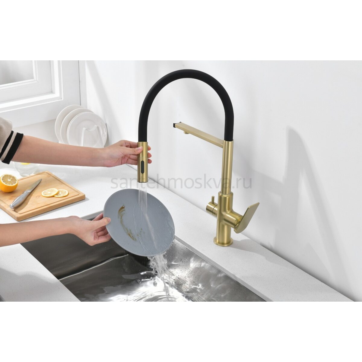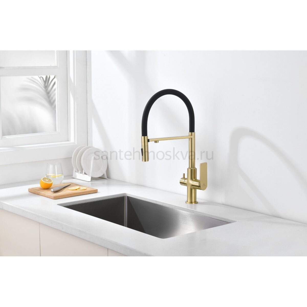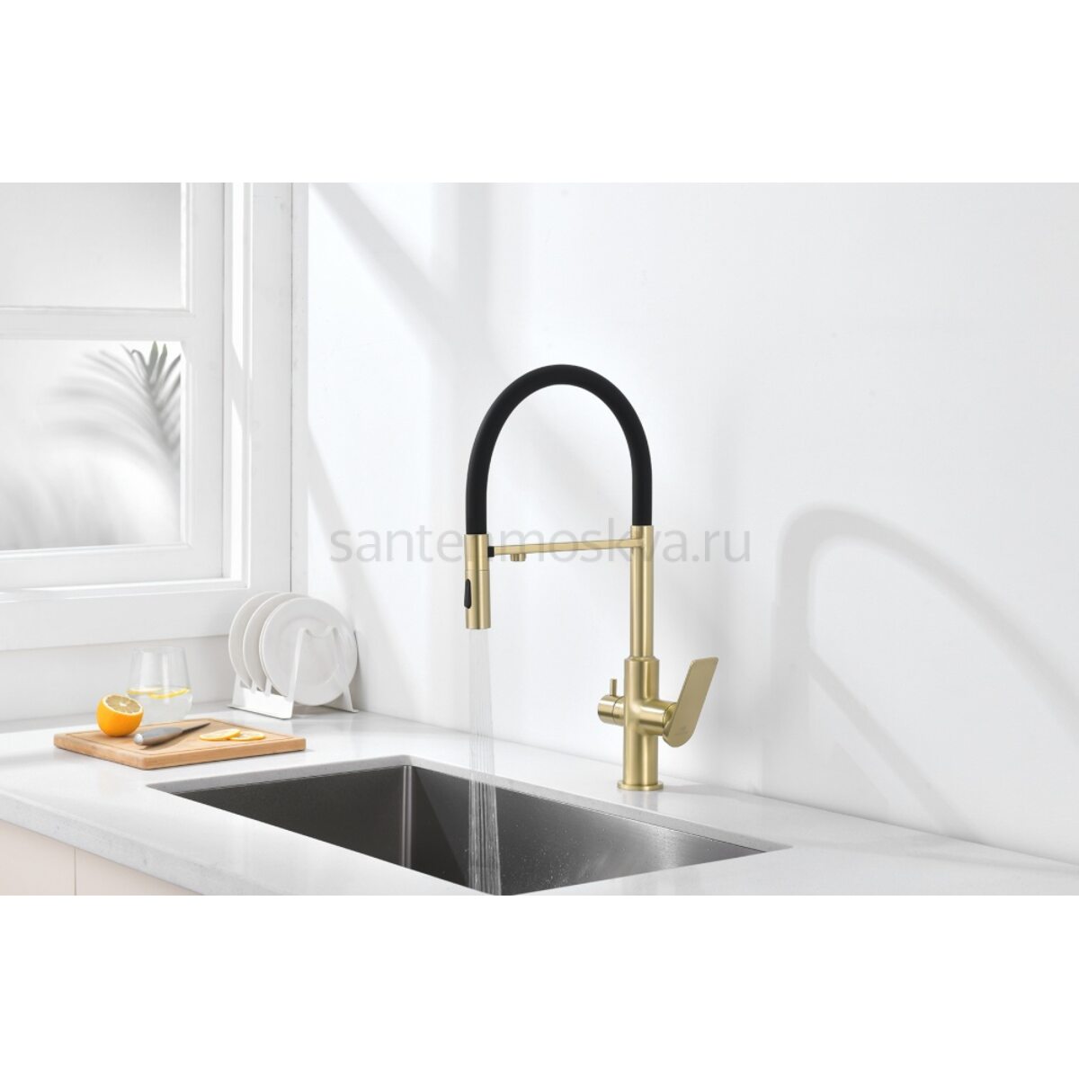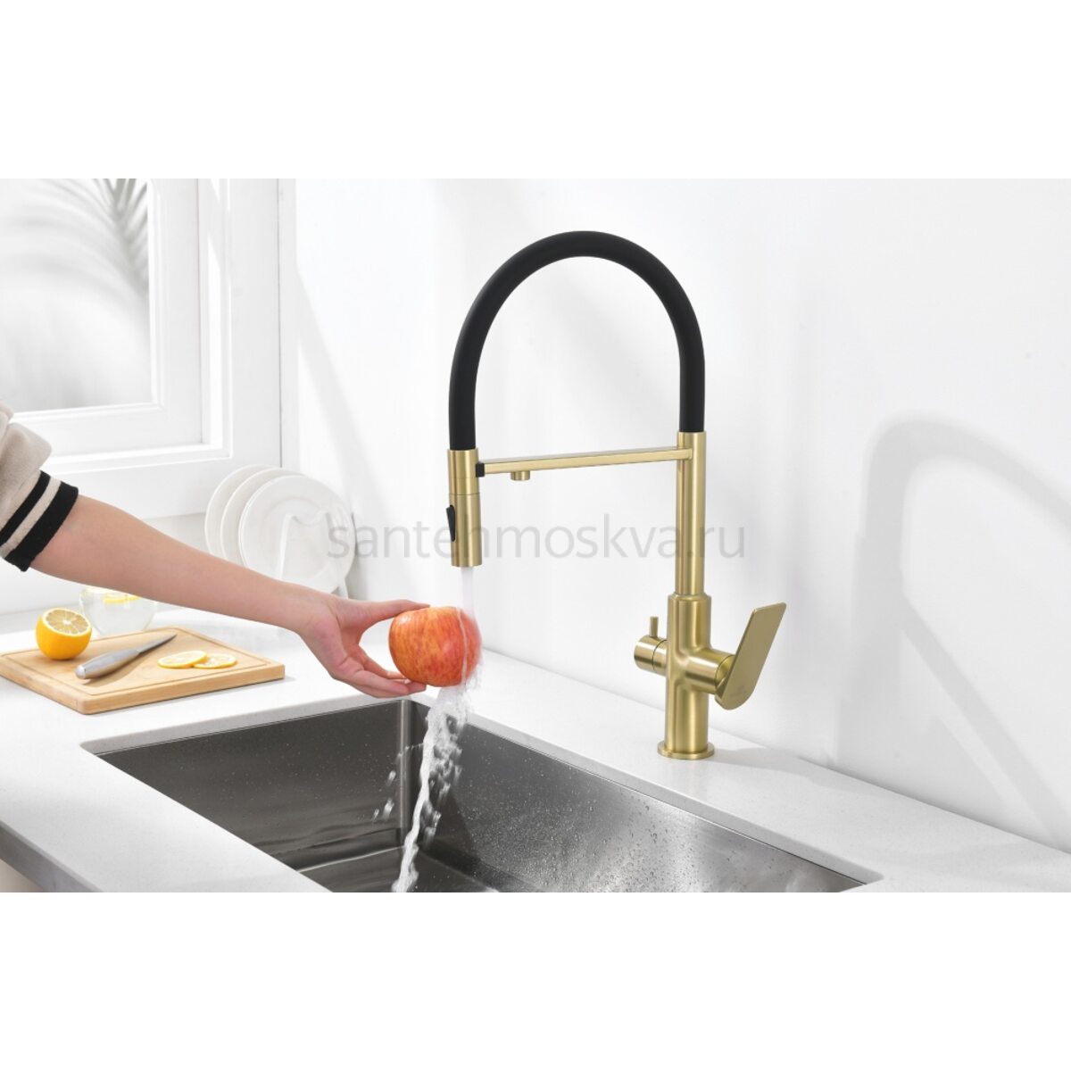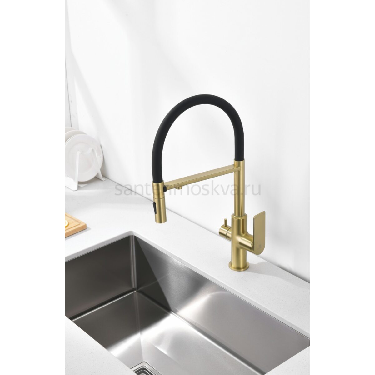 Характеристики - 07127-S Смес. для кухни с гиб МАГ. изл. и под. фильт. (матовое золото+ЧЕР.) (10/1шт)