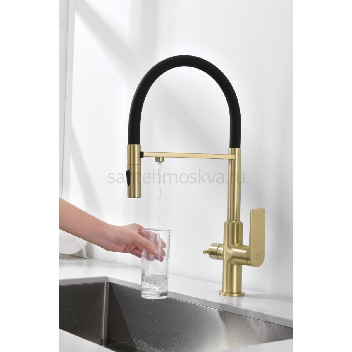 07127-S Смес. для кухни с гиб МАГ. изл. и под. фильт. (матовое золото+ЧЕР.) (10/1шт)