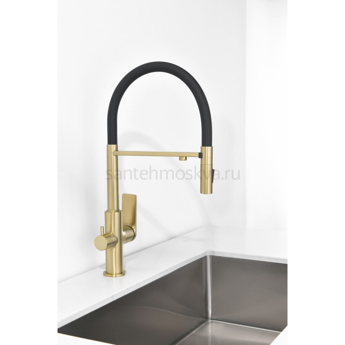Описание - 07127-S Смес. для кухни с гиб МАГ. изл. и под. фильт. (матовое золото+ЧЕР.) (10/1шт)