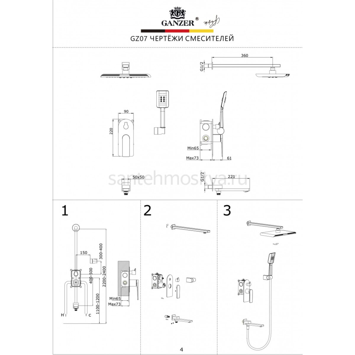 Описание - 07165 Смеситель встраиваемый для душа с 3-функ. (ХРОМ) (6/1шт)