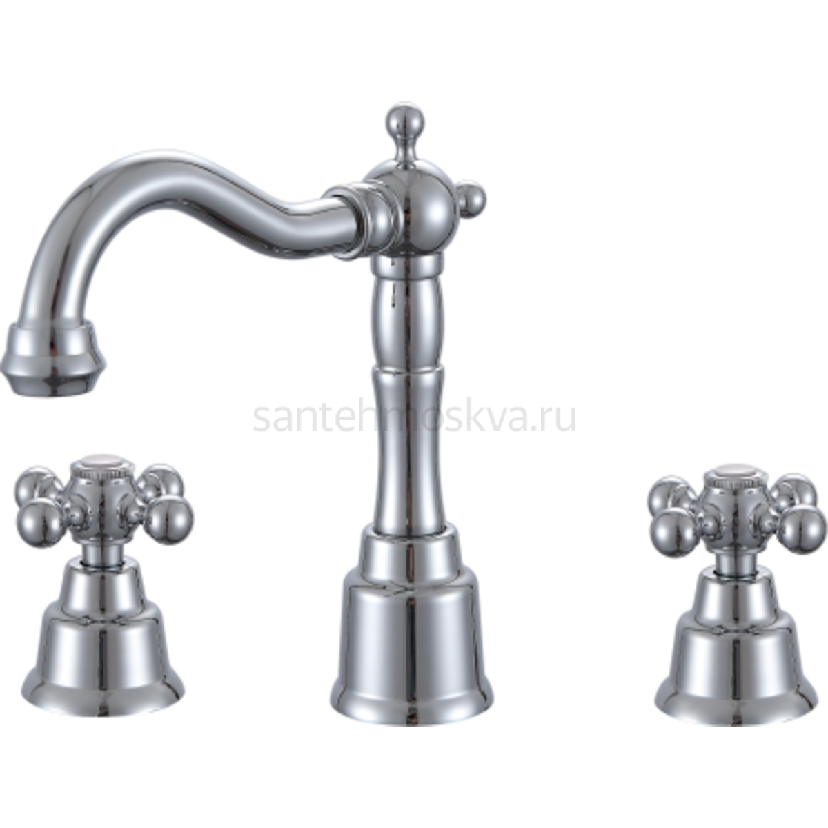 09114 Смеситель на борт раковины (3-отв, ХРОМ) (10/1шт)