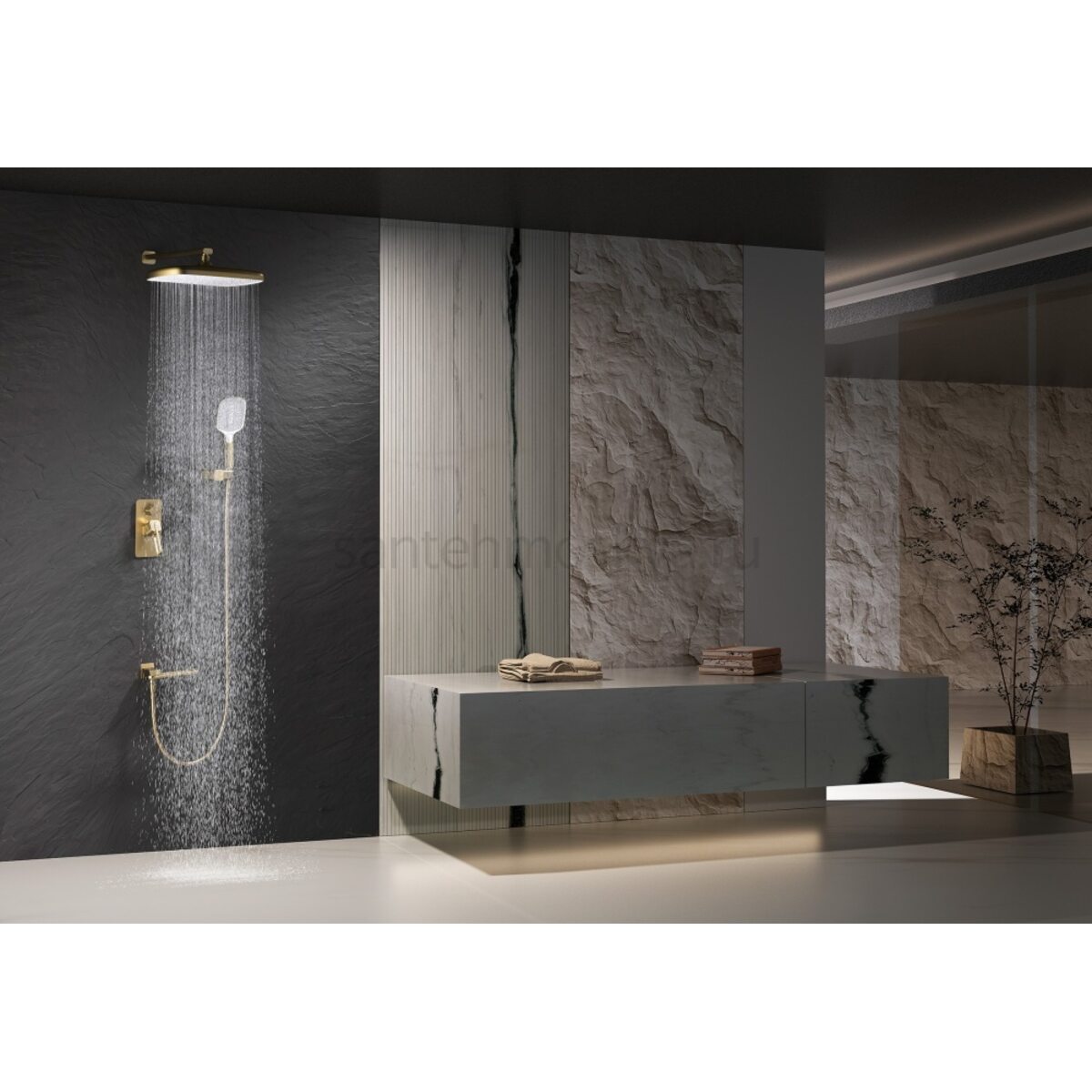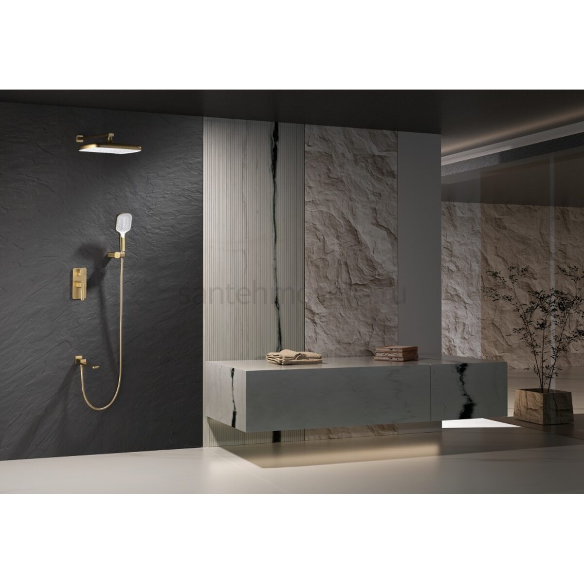 Описание - 12165-S Смеситель встраиваемый для душа с 3-функ. (матовое золото) (6/1шт)