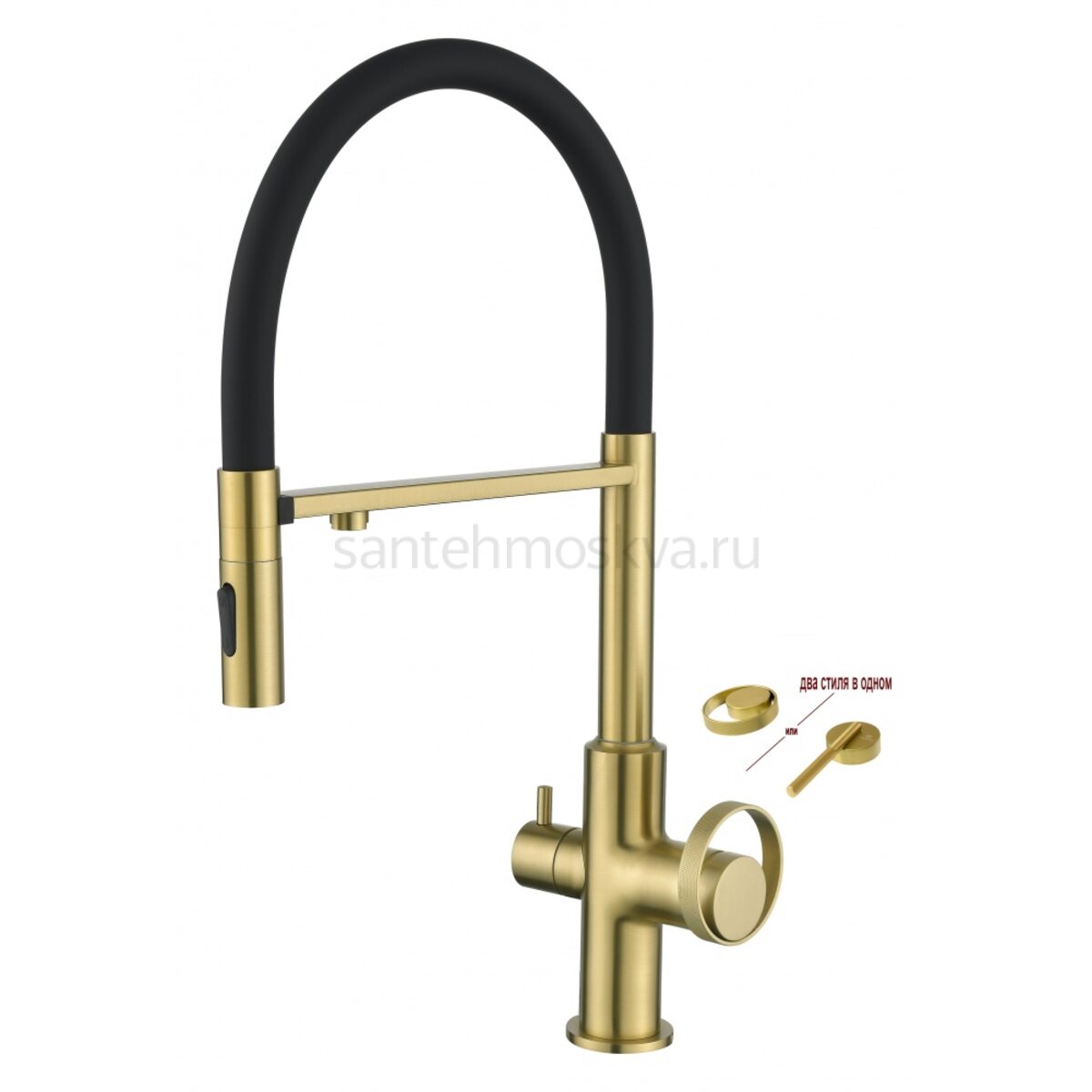 Описание - 19127-SC Смес. для кухни с гиб МАГ. изл. и под. фильт. (матовое золото+ЧЕР.) (10/1шт)