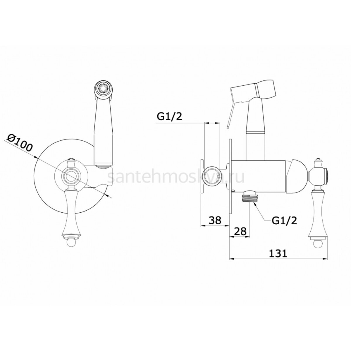 Характеристики - 77157-D Смеситель встраиваемый с ГИГ. душом (БРОНЗА) (10/1шт)