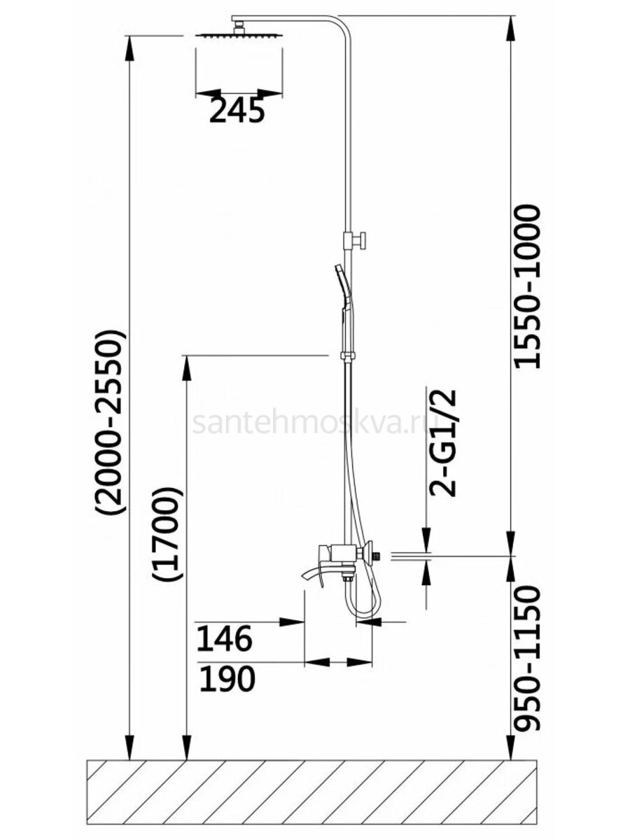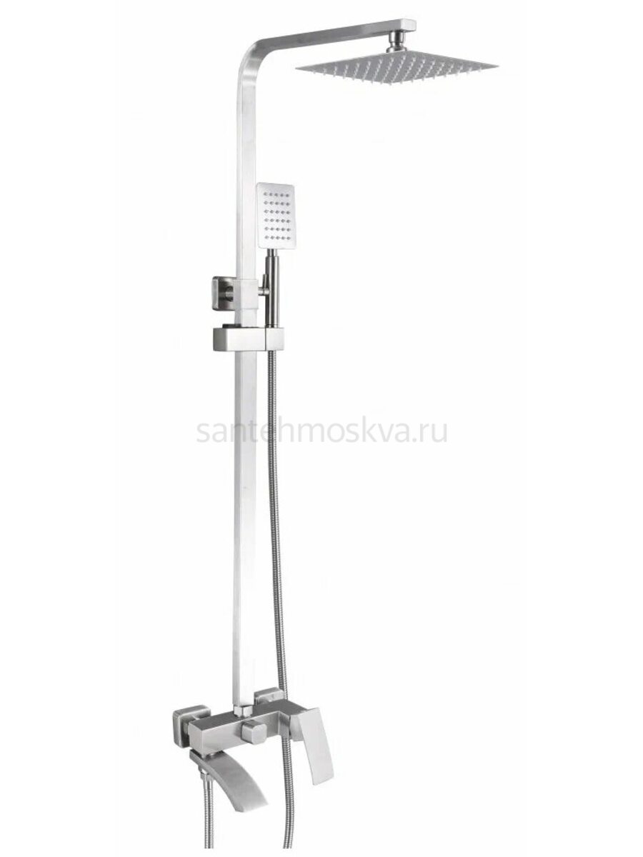 - Комплектация: Инструкция, Гарантийный талон, Набор для монтажа, Верхний душ, Душевая стойка, Держатель лейки поворотный, Ручной душ, Шланг для душа, Смеситель