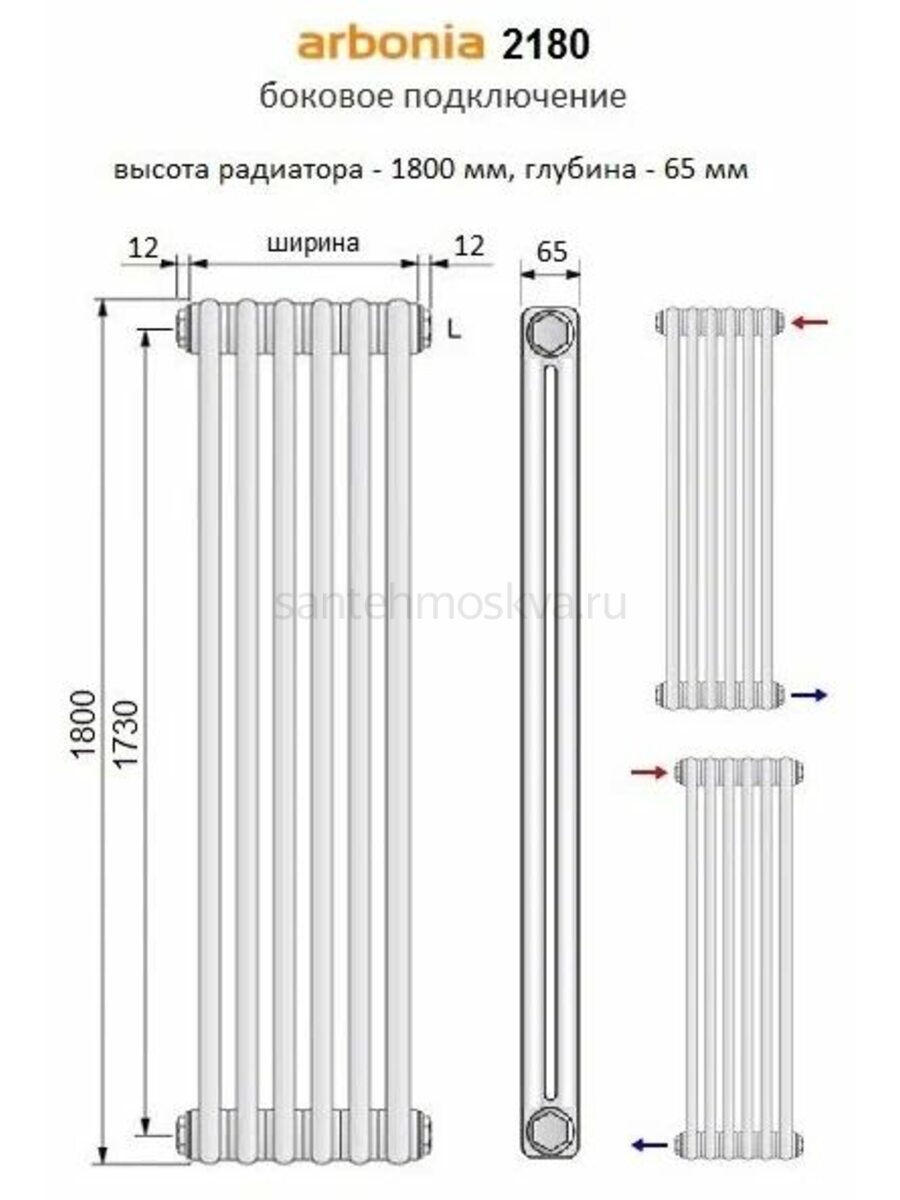 Такая конструкция радиаторов Arbonia позволяет предложить потребителю большой диапазон типоразмеров: по высоте (от 19 см до 3 метров), по длине (от 18 см до 3 метров), по глубине (от 6,5 см до 22,5 см).