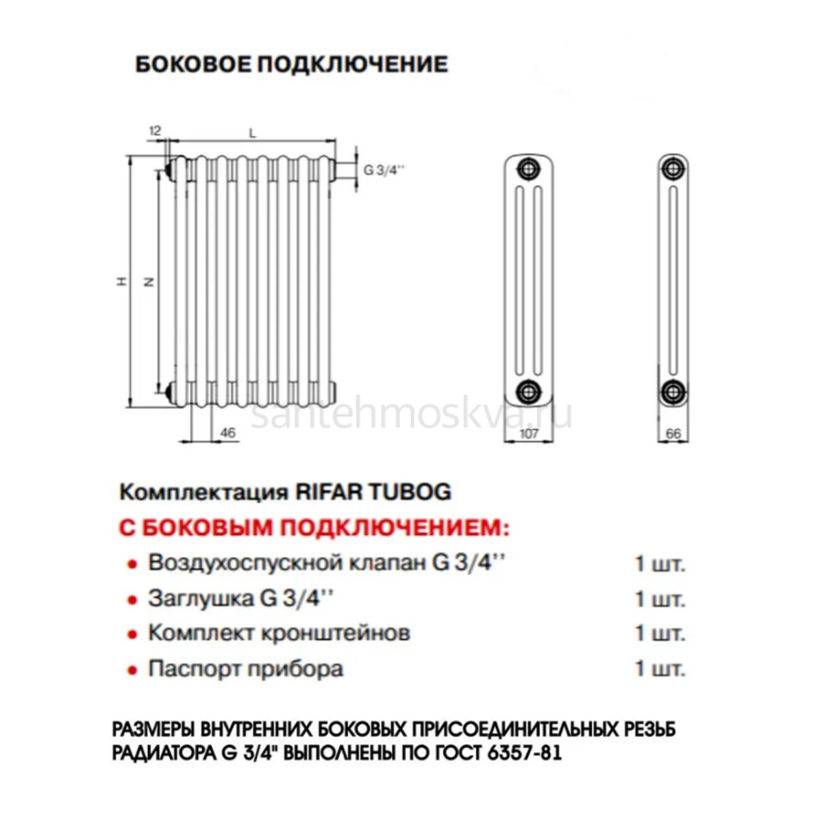 Характеристики - Радиатор отопления Tub. 3057 10 секций с боковым подключением