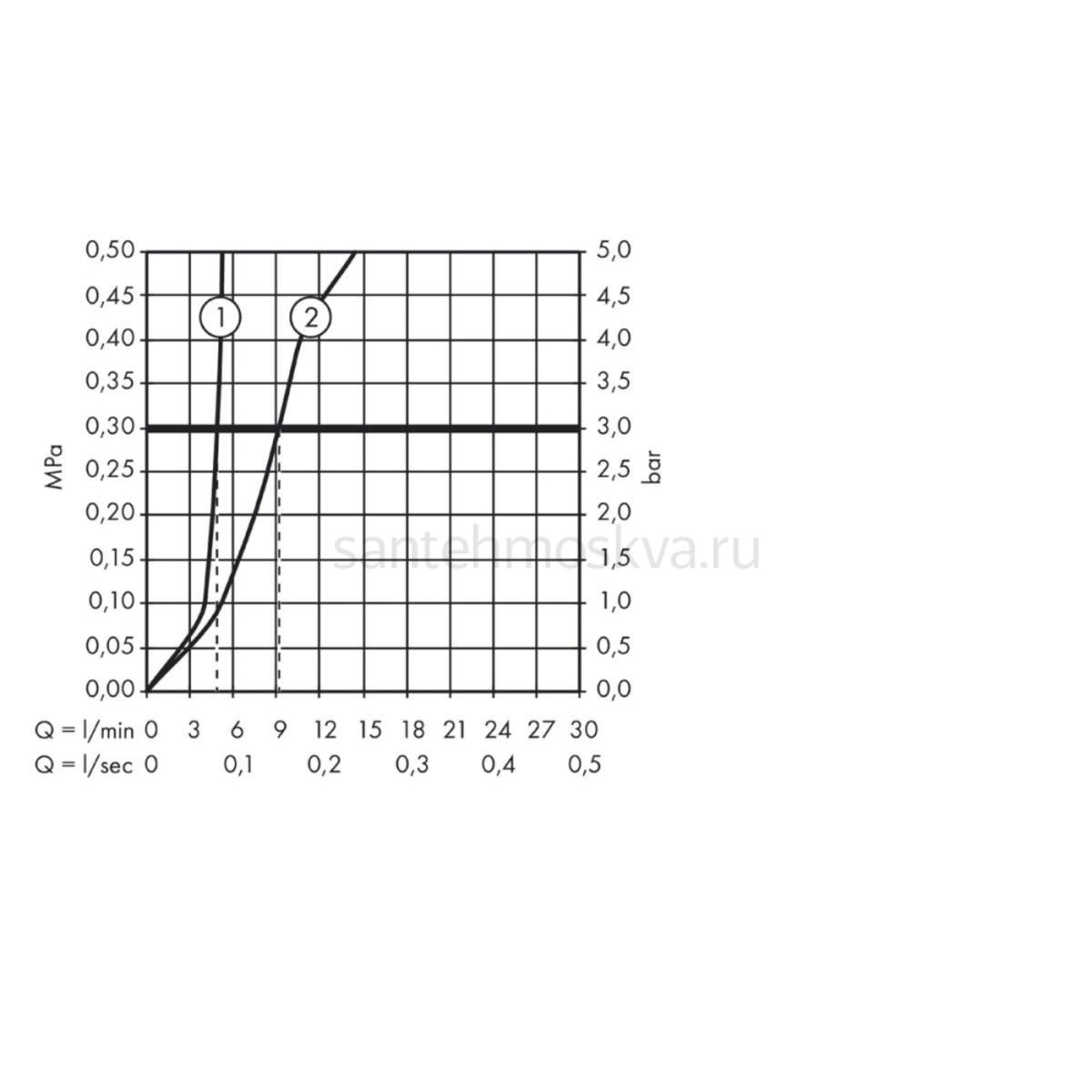 Максимальный расход воды, л/мин