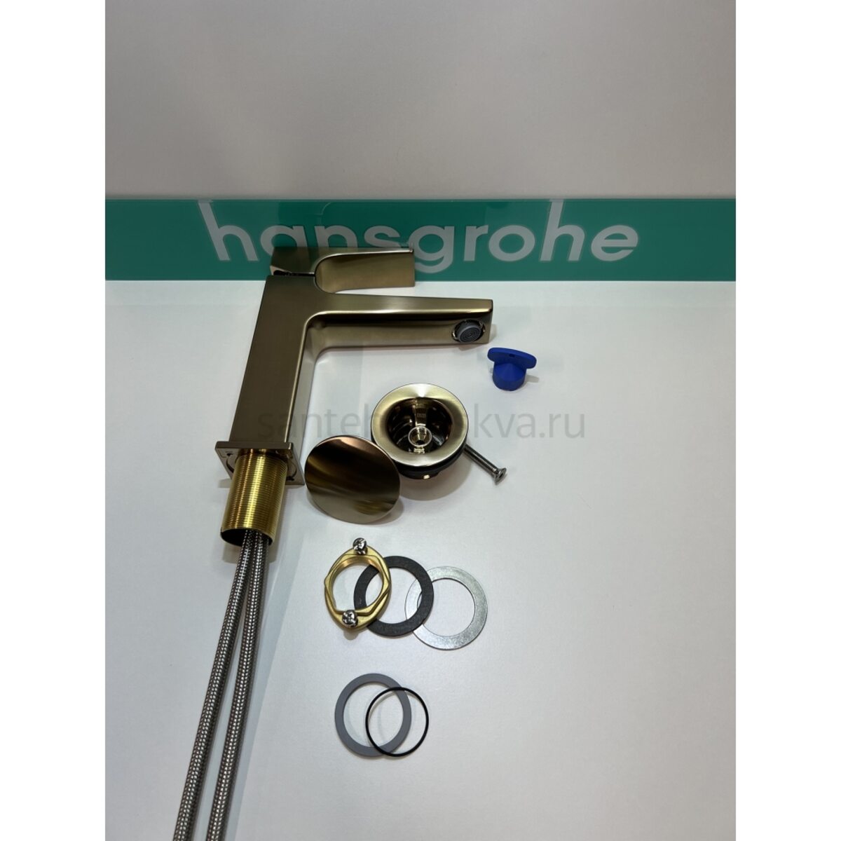 Характеристики - Смеситель для раковины hansgrohe Metropol 110 со сливным клапаном Push-Open 32507140/U, шлифованная бронза, уцененный товар