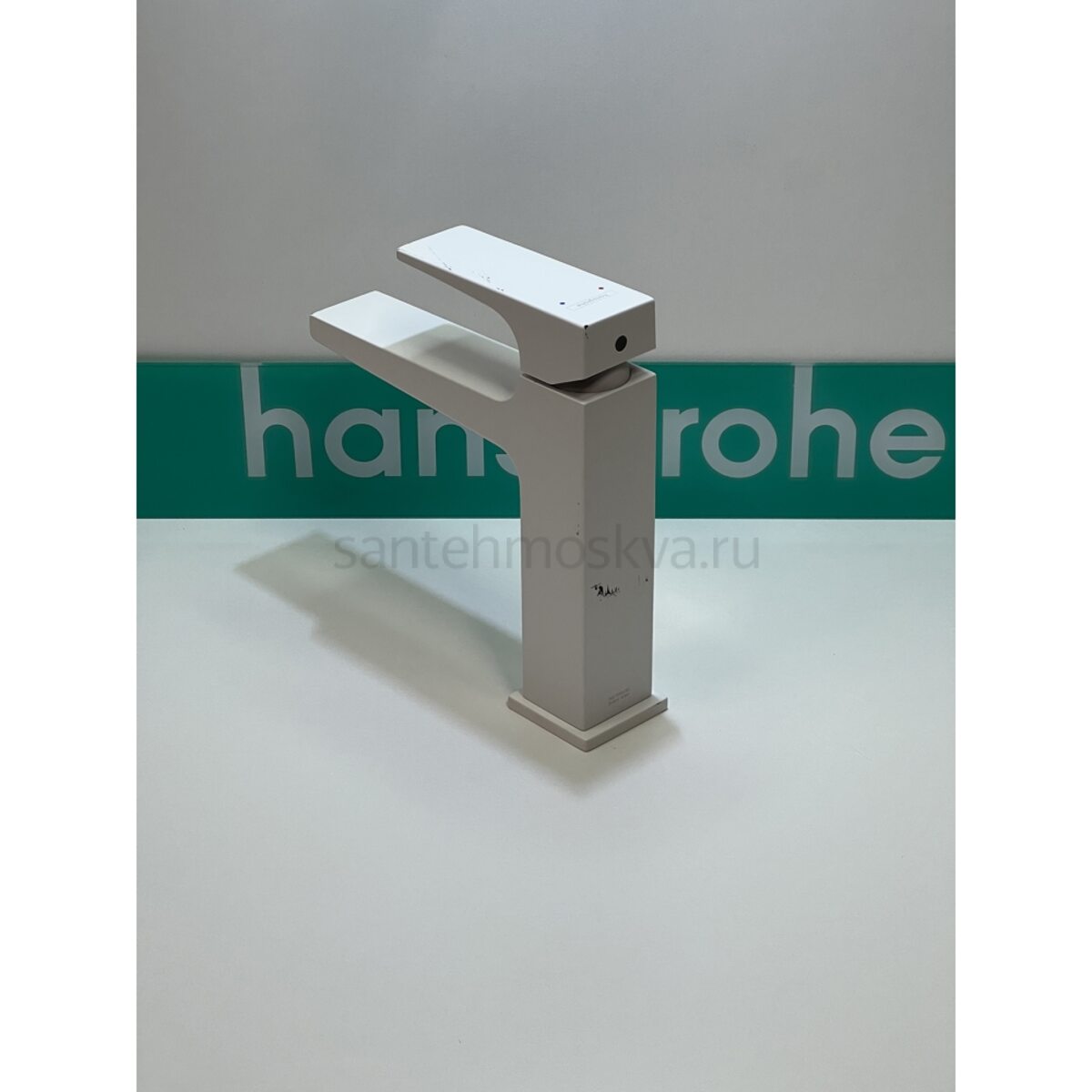 Описание - Смеситель для раковины hansgrohe Metropol 110 со сливным клапаном Push-Open 32507700/U, матовый белый, уцененный товар