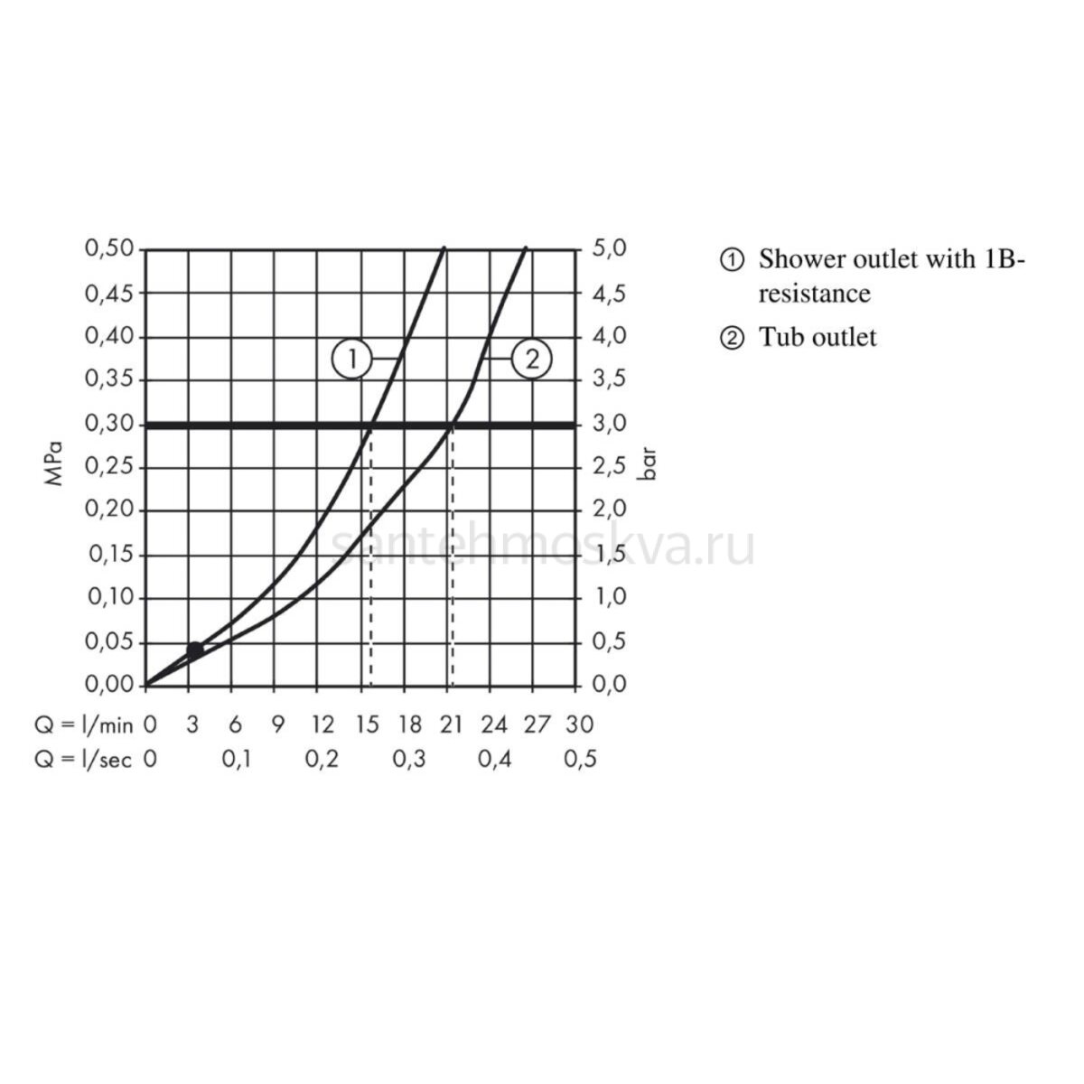• расход воды для излива ванны при давлении 3 бара: 19,8 л/мин